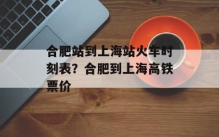 合肥站到上海站火车时刻表?合肥到上海高铁票价 这篇文章给大家聊聊关于合肥站到上海站火车时刻表,以及合肥到上海高铁票价对应的知识点,希望对各位有所帮助,不要忘了收藏本站哦。本文目录最新的合肥到上海的火车时刻表合肥到上海最新火车时刻表合肥到上海的普快... 牵着乌龟去散步 2024-09-30 36 #合肥站 #高铁 #上海站 #合肥 #时刻表